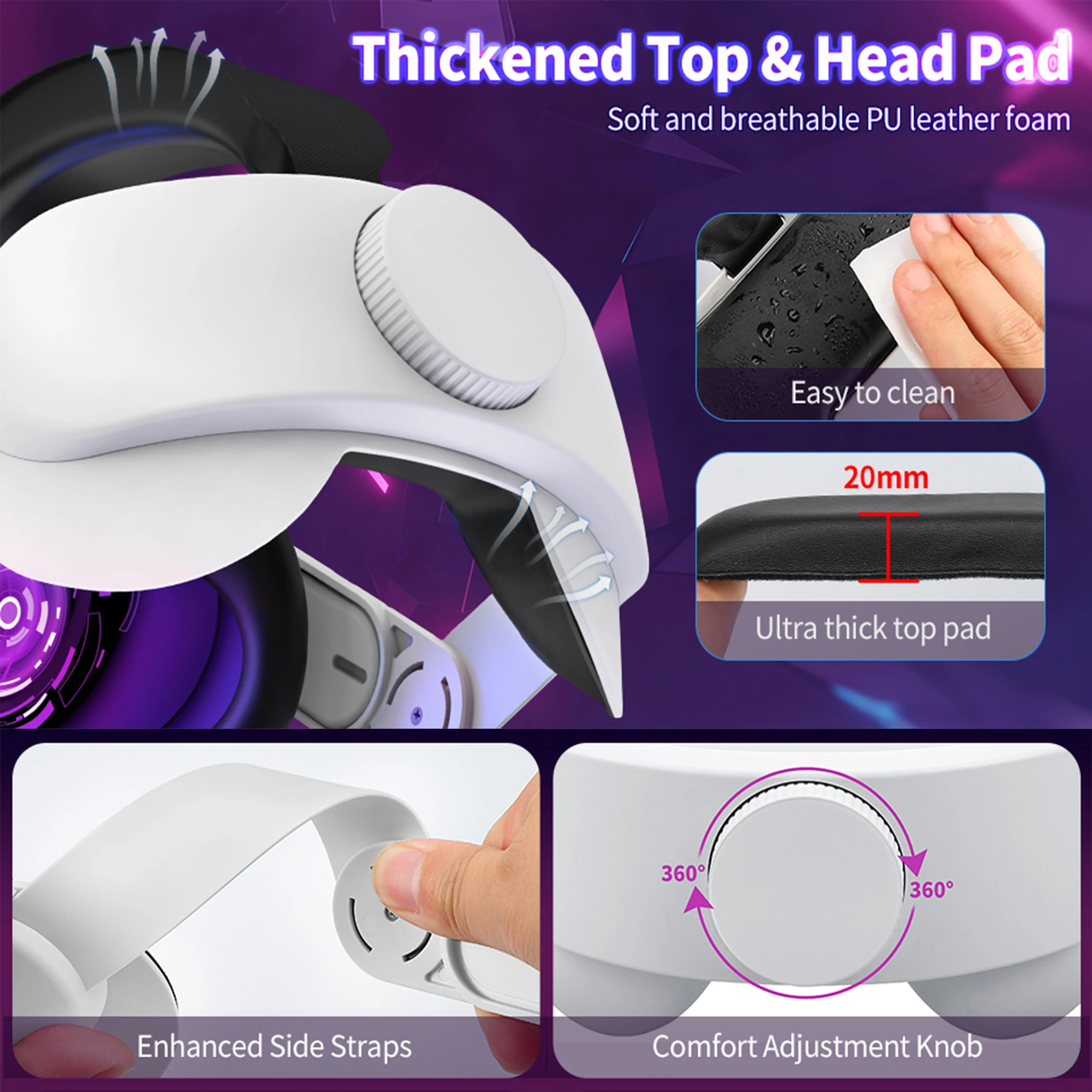 ?Almofadas de couro PU premium?Equipadas com almofadas de couro PU adequadas para a pele em cada ponto de suporte, a almofada de cabeça atualizada com 80 mm de largura e 15 mm de espessura é mais macia, respirável e absorvente, o que pode aliviar o calor na parte de trás da cabeça ao jogar jogos.A confortável almofada de couro PU de alta qualidade com superfície lisa é muito fácil de limpar, basta limpar com um pano úmido, sem preocupações de manutenção.